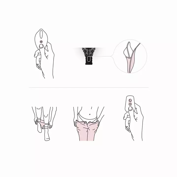 Slå på vibratorn med ett kort trycka på (på/av) knappen, du kommer att känna att den vibrerar så fort den slås på. Knappen med cirkeln på fjärrkontrollen kan användas för att ändra vibrationsinställningarna och vibrationerna kan pausas med pausknappen.